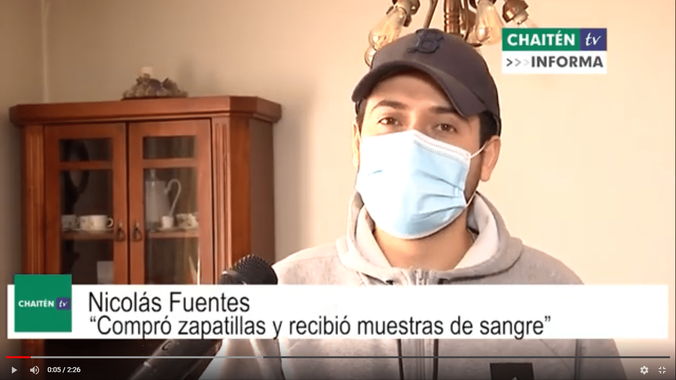 Negligencia total?, de quién es la culpa?, preguntas que Nicolás Fuentes, joven de la ciudad de Osorno, se hace al recibir una encomienda errónea, todo parte cuando compró vía on line unas zapatillas marca Columbia, sorpresa recibió cuando Correos de Chile llega a su casa para entregar el producto, al abrir la caja se percata que el producto comprado no estaba, sino que era una caja del ISP en la cual contenía productos para análisis del Laboratorio Clínico del Hospital de Chaitén, con “muestras de sangre humana o derivados para evaluación de inmunología básica” según el rotulado de la caja, la empresa aludida Columbia Chile no han entregado una respuesta satisfactoria, mientras que Correos de Chile, tomo conocimiento del hecho tras viralizarse su caso y en un comunicado informa que realizara una investigación interna, además en palabras del encargado de Correos de Chile en Osorno le informaron que la caja tenia origen en Santiago con destino a Chaitén, Nicolás aún mantiene las muestras de sangre en su casa, según el rotulado de la caja dice” Sustancias Biológicas Categoría B” Hospital de Chaitén.