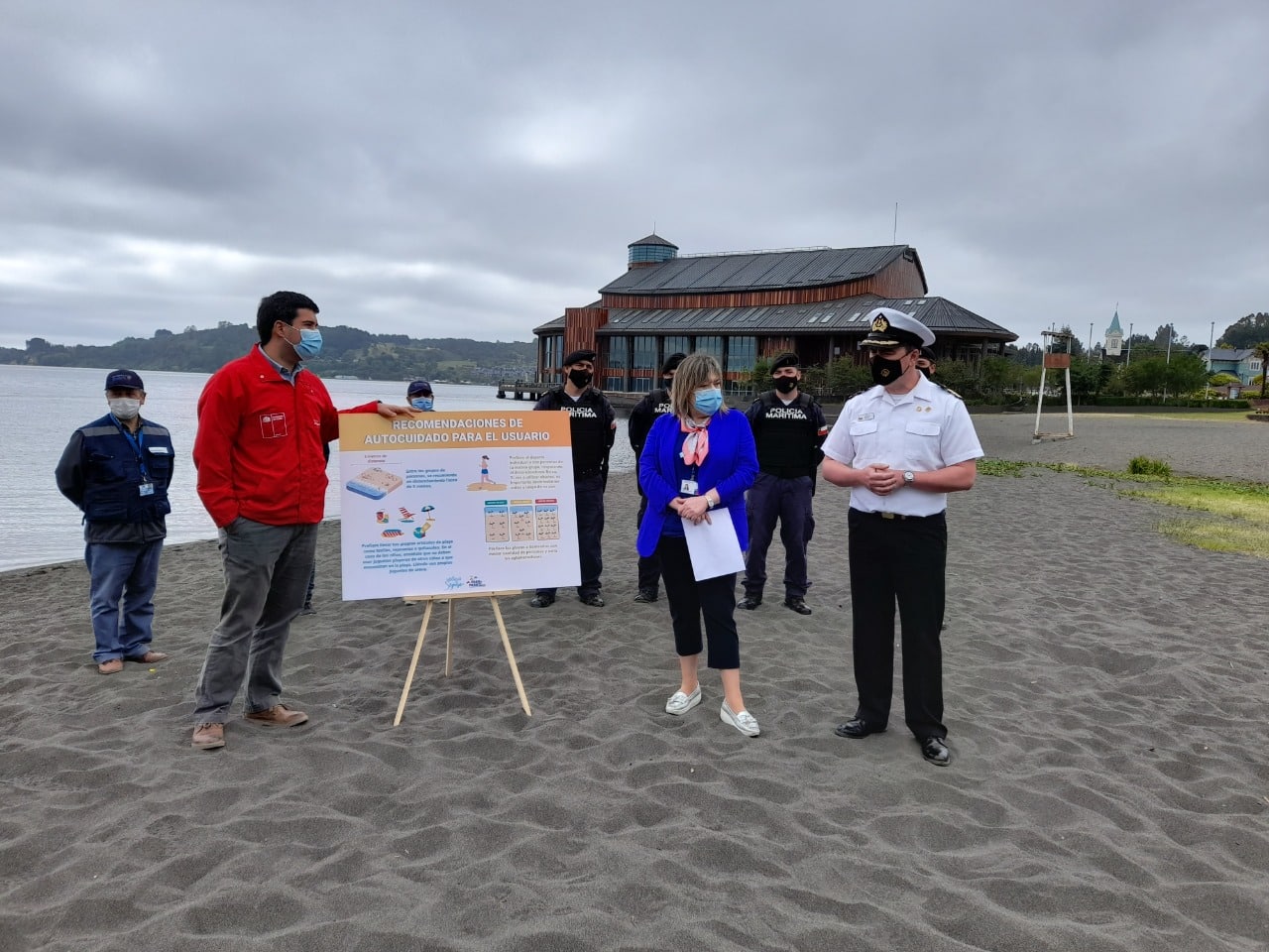 El ministro de Bienes Nacionales, Julio Isamit llegó hasta la región de Los Lagos para realizar la presentación del protocolo “Playa Segura”. En el balneario de la ciudad lacustre y junto a las autoridades regionales y locales, el Secretario de Estado entregó medidas y recomendaciones para disfrutar de un verano seguro.