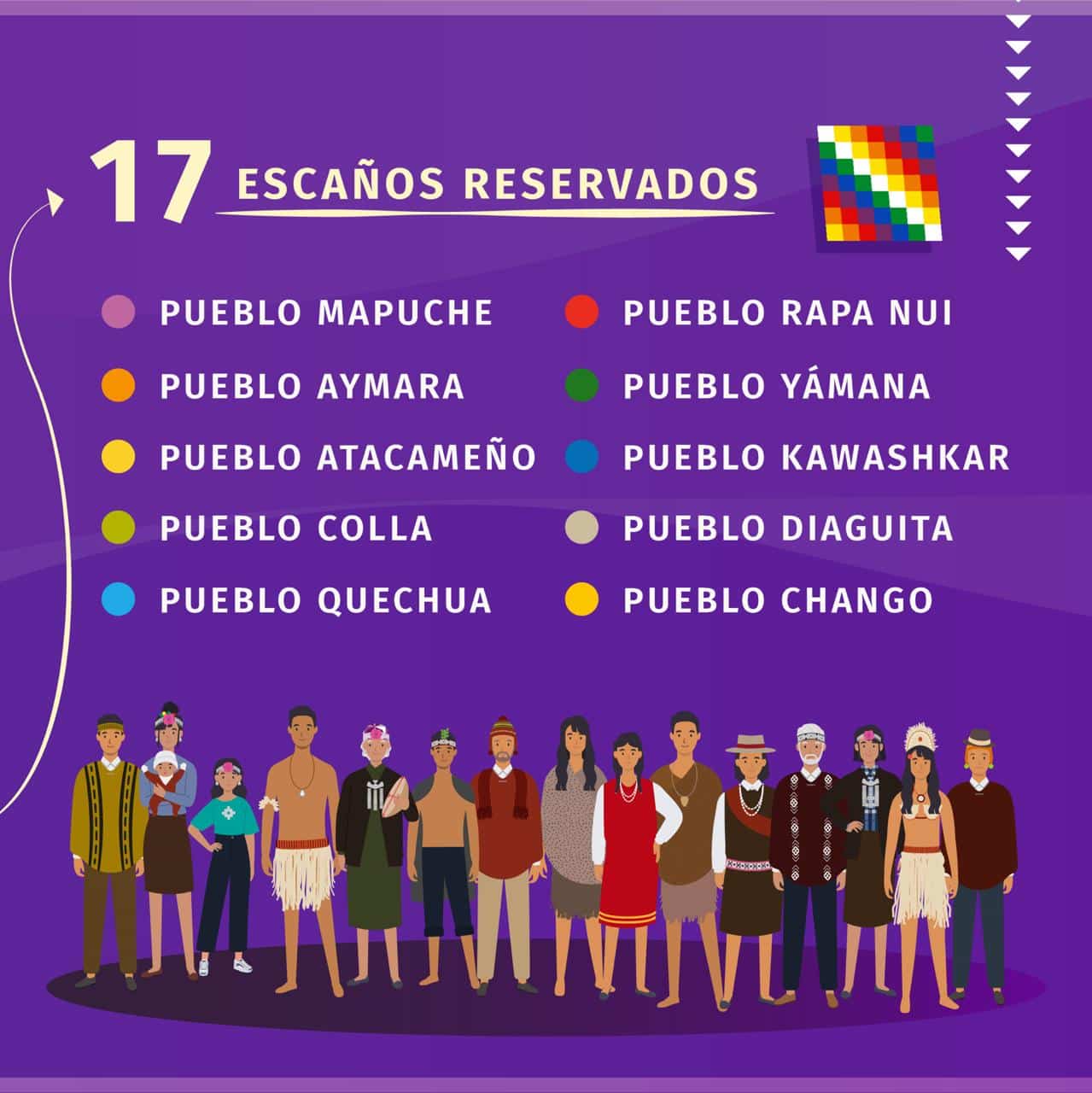Cabe recordar que la ley aprobada de forma unánime en la sala del Senado y que fue promulgada estableció un total de 17 escaños reservados indígenas que serán incluidos dentro de los 155 de la Convención Constitucional y que garantiza 7 asientos para el pueblo Mapuche, 2 para el pueblo Aymara, 1 escaños para el pueblo Rapa Nui, 1 para el pueblo Quechua, 1 para el pueblo Lican Antay o Atacameño, 1 para el pueblo Diaguita, 1 para el pueblo Kawésqar, 1 para el pueblo Yagán, 1 escaño para el pueblo Chango y 1 para los Colla.