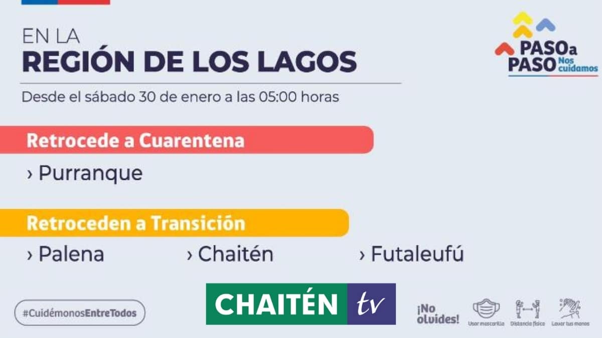 En esta jornada las autoridades de salud, informaron que tres comunas de la provincia de Palena retroceden a fase 2, significa que Retroceden a Transición a partir de las 05:00 horas del sábado 30 de enero las comunas de: