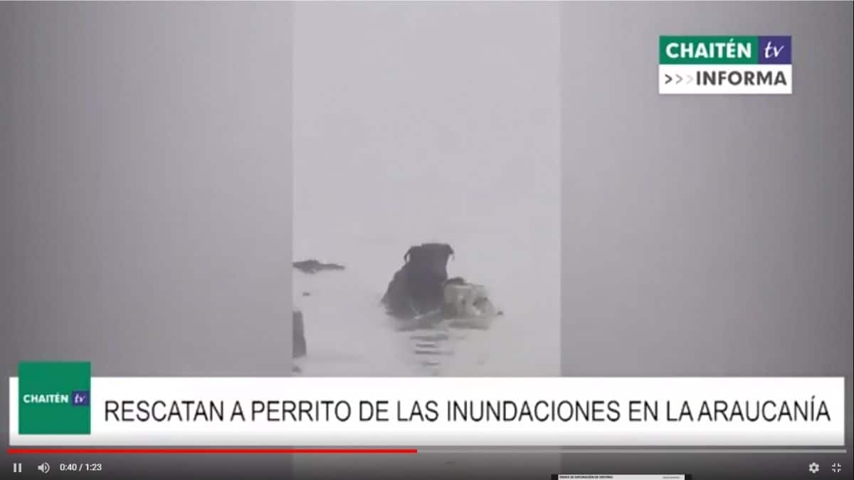 Personas anónimas de la zona fueron en rescate de perrito que se encontraba en medio de las inundaciones, las imágenes registradas corresponden a la comuna de Toltén, región de la Araucanía.