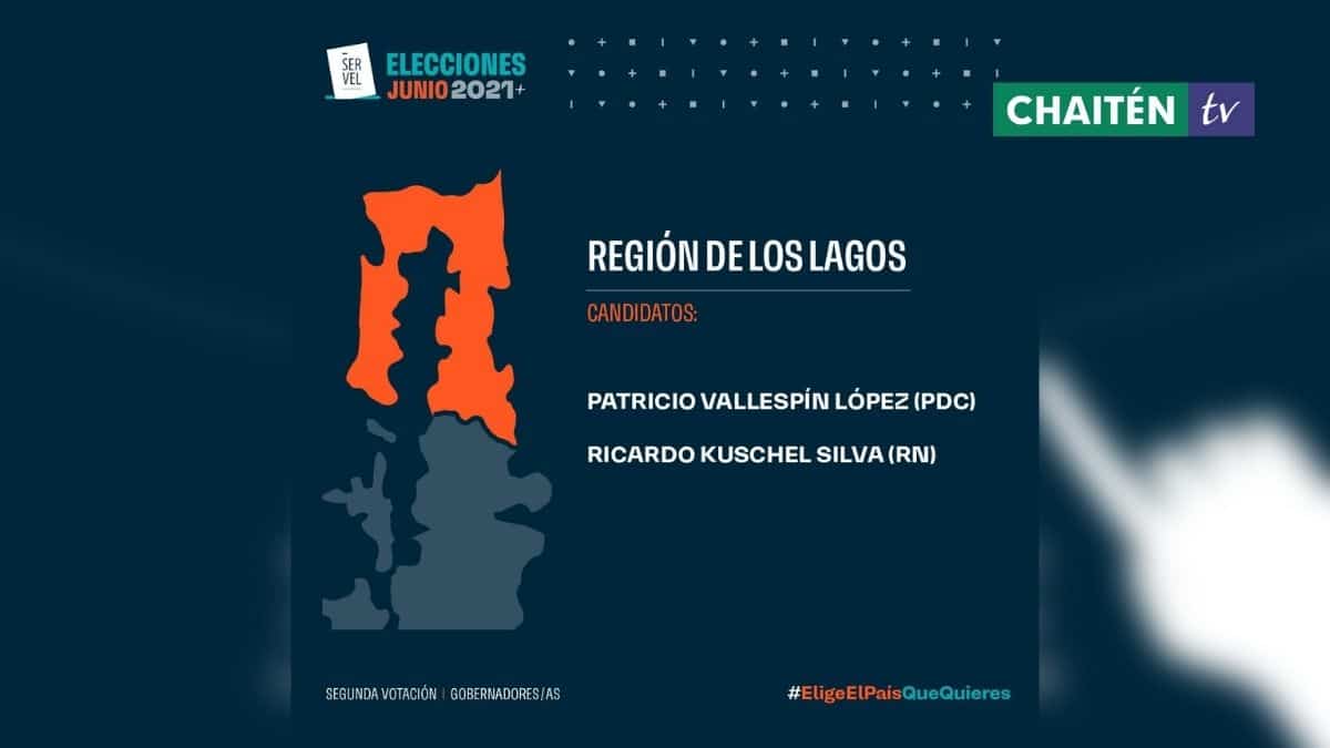 En el caso de la región de Los lagos, los dos candidatos a gobernadores por la región es Patricio Vallespín (PDC) y el candidato Ricardo Kuschel (RN)