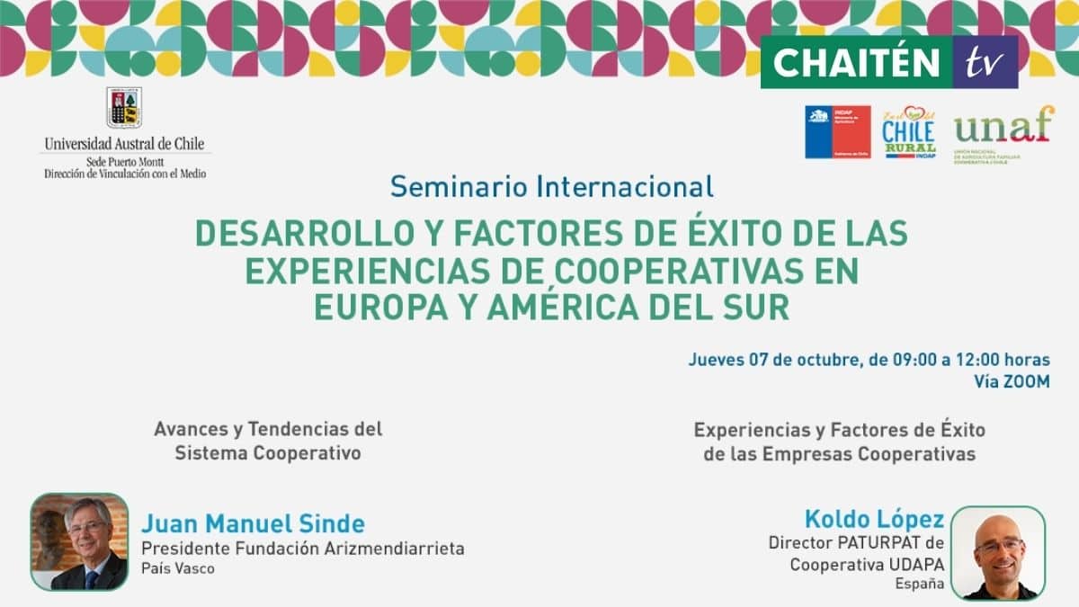El Seminario Internacional llamado «Casos de Éxito de las empresas cooperativas más representativas de Europa y América del Sur», mostrará los avances y tendencias del sistema cooperativo, además se abordarán algunos tópicos importantes del área, la realización del evento está en manos de la Universidad Austral de Chile en conjunto con La Unión Nacional de la Agricultura Familiar Campesina UNAF e INDAP Los Lagos.