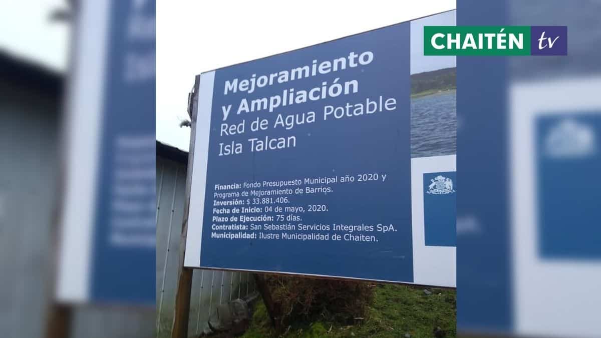 Vecinos de la Isla Talcán, localidad que pertenece a la comuna de Chaitén, manifestaron su molestia al proyecto de mejoramiento y ampliación de la red de agua rural, proyecto que tenía fecha para el año 2020, con un tiempo de ejecución de 75 días y una inversión de más de 33 millones de pesos, en la actualidad el proyecto no se ha ejecutado del todo, ya que vecinos manifiestan que las tuberías se encuentran en mal estado y lo peor que no hay agua para la Isla, lo que representa un problema ya que se viene el verano y el calor.