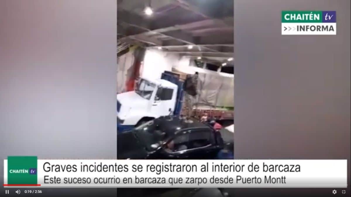 Un hecho que altero el viaje, fue este incidente que se registró en pleno viaje de la barcaza que zarpo de Puerto Montt, el registro da cuenta de un sujeto alterado que circula por arriba de los vehículos, mientras otros pasajeros lo tratan de reducir.