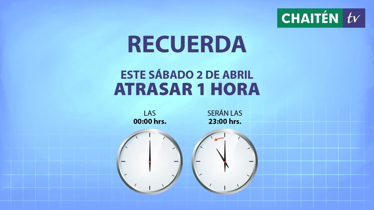 El cambio de hora en Chile se realizará este sábado 2 de abril de 2022, donde los relojes deberán ser modificados a lo largo y ancho del país, retrasando en una hora los relojes, pero menos en la región de Magallanes y la Antártica Chilena, la cual mantendrá el mismo horario.