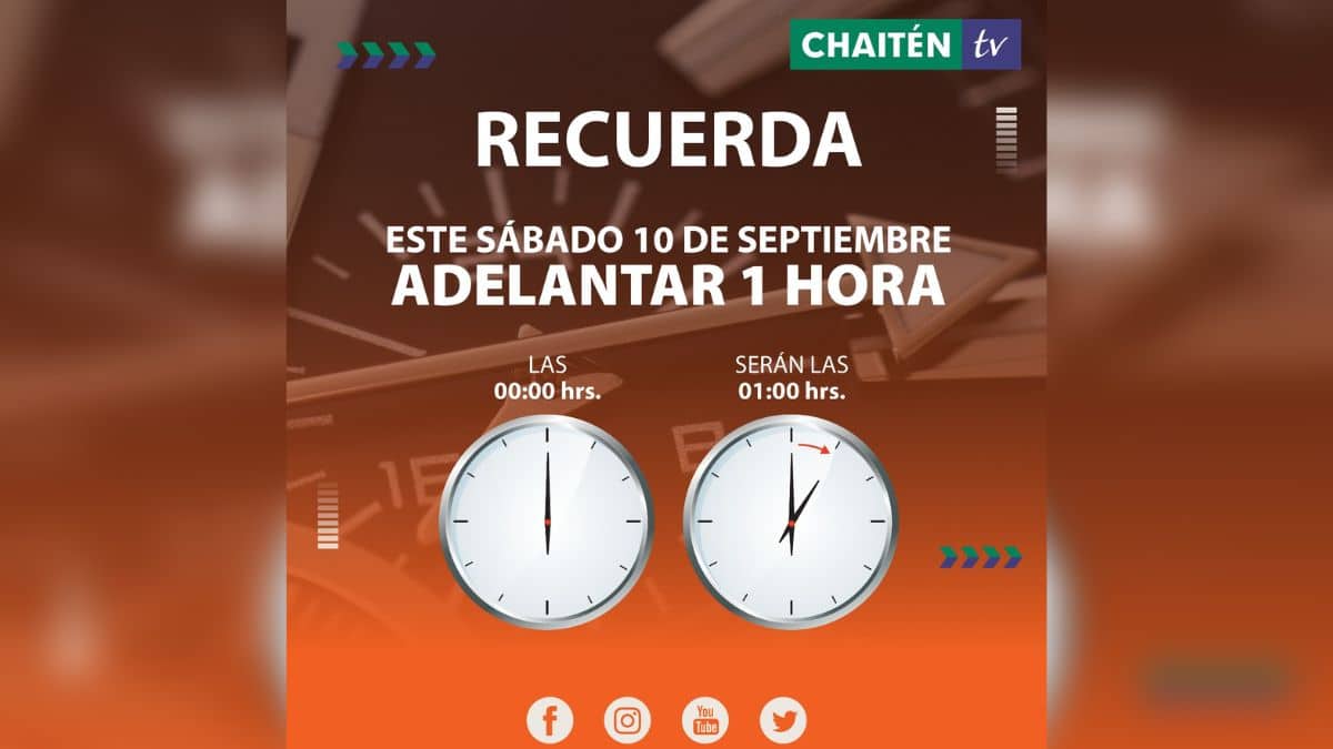 “De esta manera, se establece que a contar de las 00.00 horas del sábado 10 de septiembre de 2022, y hasta las 24 horas del sábado 1 de abril de 2023, la hora oficial se adelantará 60 minutos”.