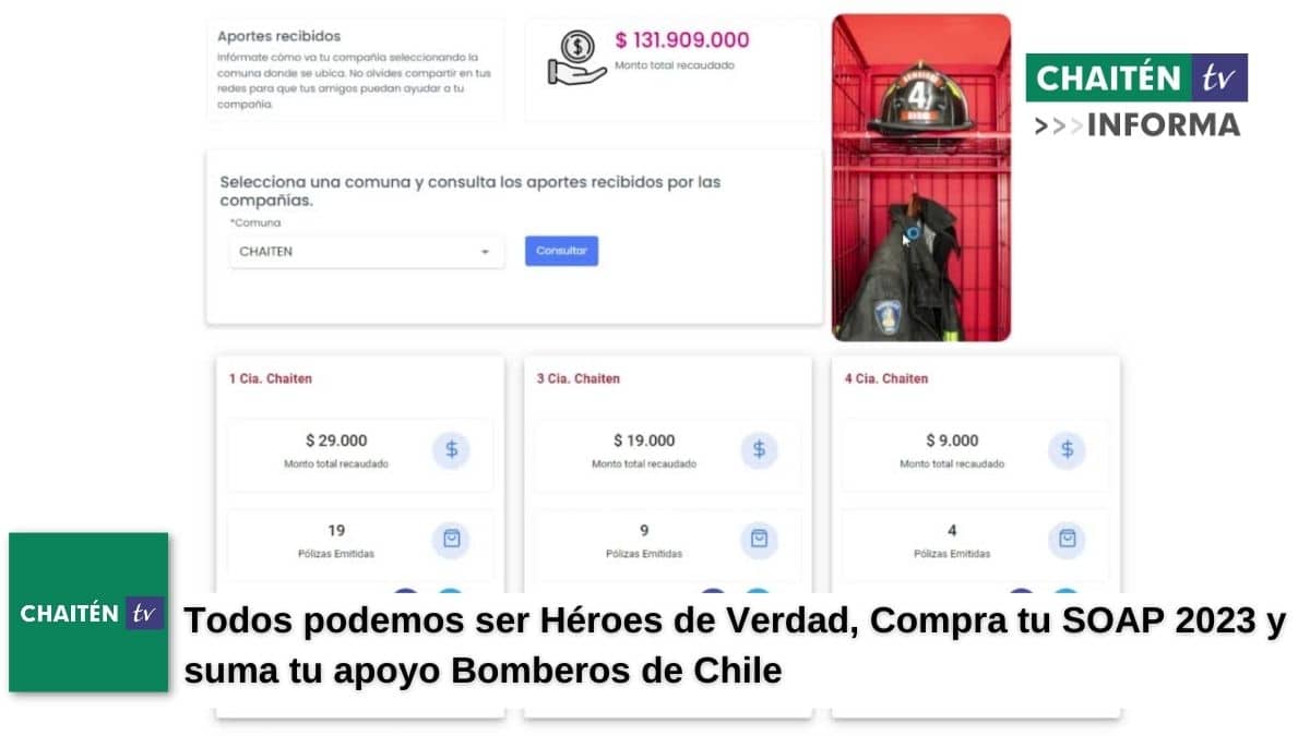 Recuerda que al valor de tu póliza puedes donar $1.000 / $2.000 / $3.000 / $5.000 / $10.000 / $20.000 directamente a la Compañía de Bomberos de Chaitén