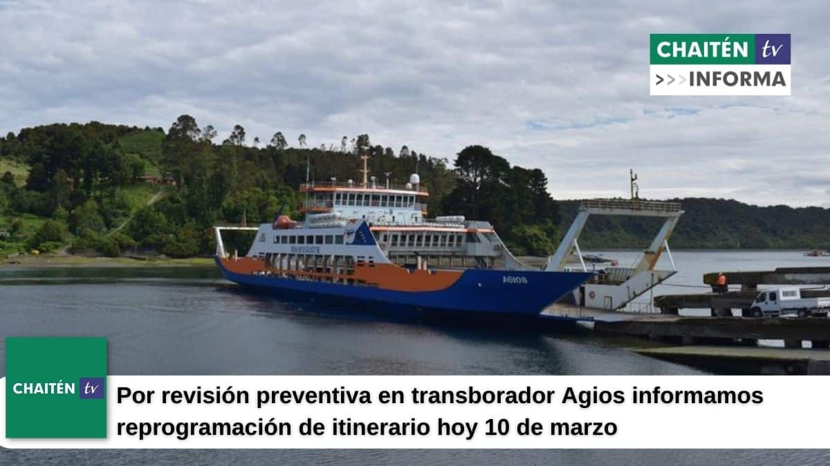 Por revisión preventiva en transborador Agios informamos reprogramación de itinerario hoy 10 de marzo RutaChaitén