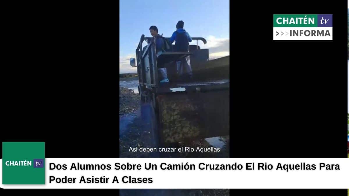 Vecina de la localidad de casa de Pesca en la Comuna de Chaitén, nos muestra la dificultad que tienen para poder acceder a servicios básicos como la educación, en el video muestra a dos alumnos sobre un camión cruzando el Rio Aquellas para poder asistir a clases, hoy se espera una reunión con autoridades para ver el avance en el plan de mitigación y la solución definitiva que seria un puente que permita conectar a esta comunidad, un anhelo de años, que el pasado 15 de febrero pasado llevo a pobladores a bloquear accesos al muelle de Chaitén para que fueran escuchadas sus demandas.