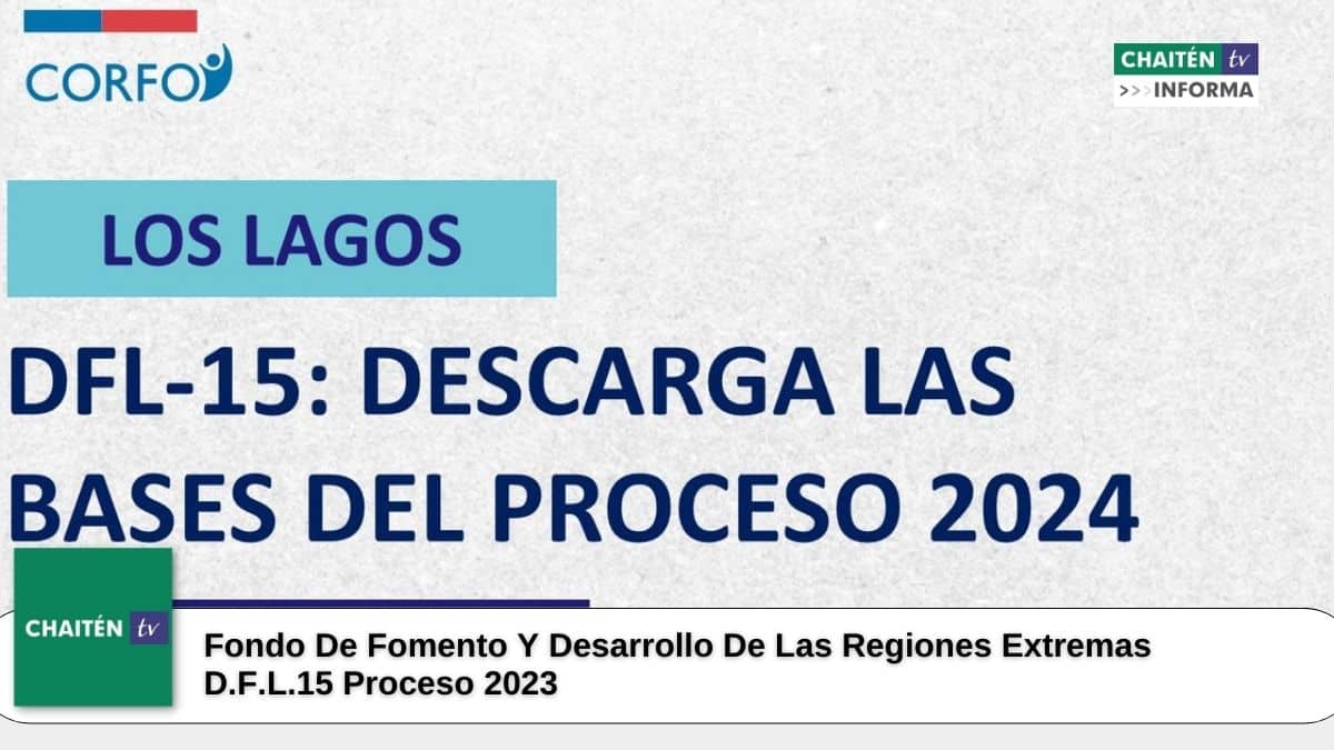 El director de Corfo Los Lagos Gabriel Pérez, anunció la apertura de las postulaciones para la “Bonificación del DFL 15”, señaló que es una iniciativa dirigida a micro, pequeñas y medianas empresas de la región con el objetivo de mejorar el crecimiento y la productividad local. Este instrumento busca bonificar en un 20% las iniciativas de inversión o reinversión directamente vinculadas al proceso productivo, generando un impulso significativo a micro emprendedores e inversionistas en el territorio de Chiloé y Palena .