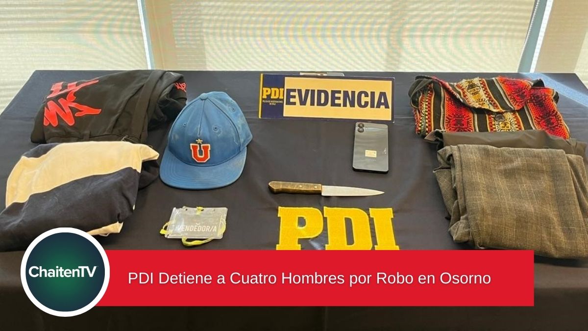 La Policía de Investigaciones detuvo a cuatro hombres adultos en Osorno por su presunta participación en un violento robo con intimidación y retención de una víctima de 32 años. El hecho ocurrió durante la madrugada del 7 de mayo de 2025, en pleno centro de la ciudad.